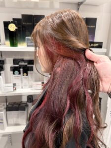 こちらがご来店時の状態です。前回のカラーから数ヶ月が経ち、髪本来の赤みが出て、少しパサつきが気になっていました。「変えた感」は欲しいけれど、ダメージは最小限に抑えたいというご要望です。