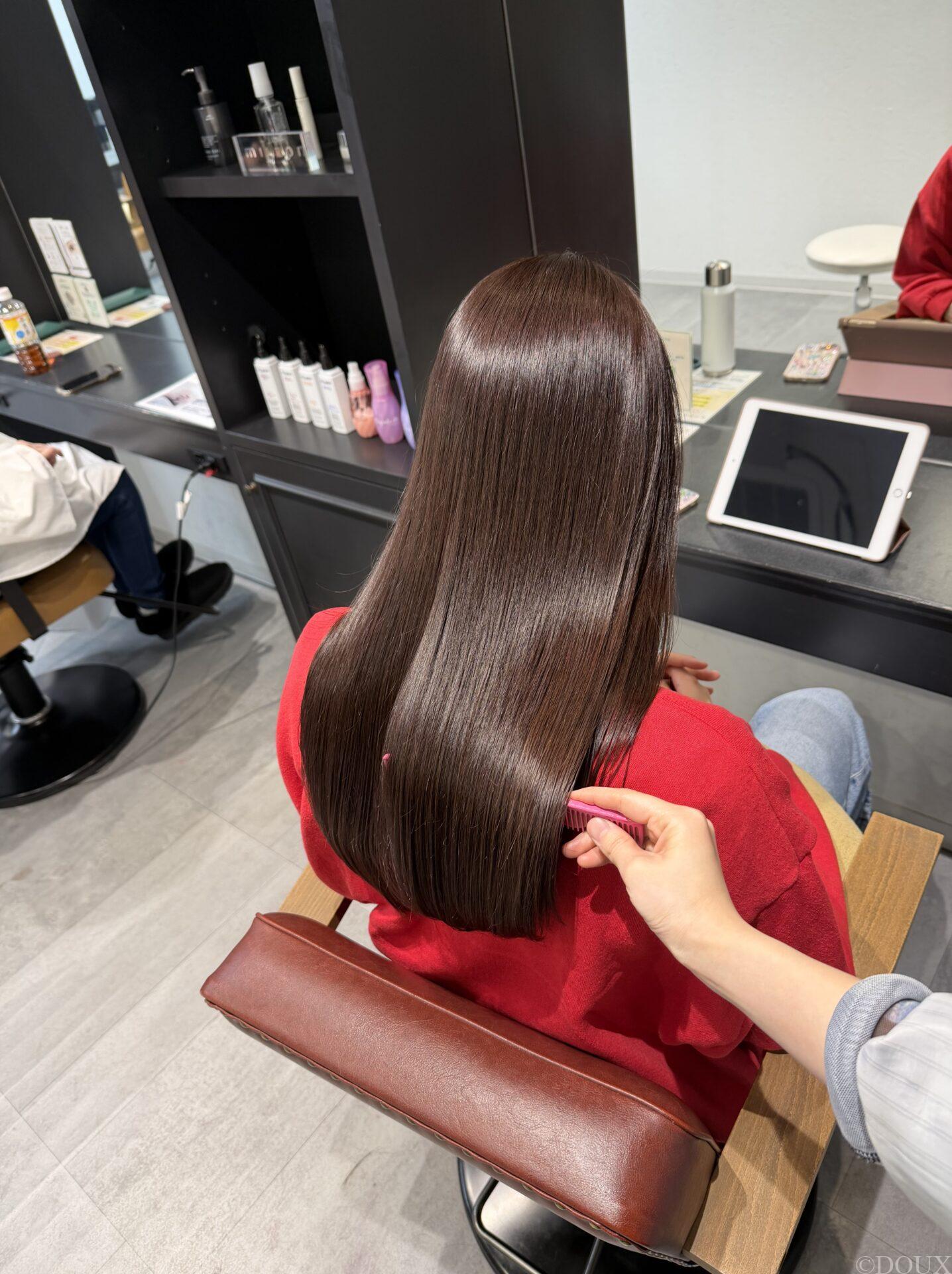 ラベンダーで透明感を出しつつ、レッドを少し混ぜて深みのあるカラーに調整しました。