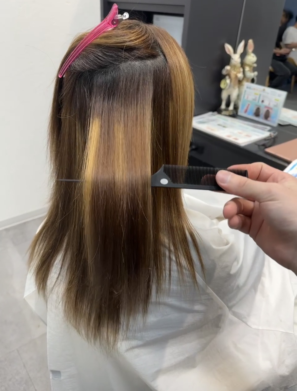 ブリーチ毛のストレートで重要なのは、薬剤のパワーコントロールと塗り分けです。