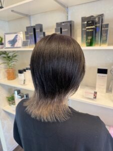 分け目の一番白髪が見えやすい位置にアンブレラカラーを入れるデザインをご提案。