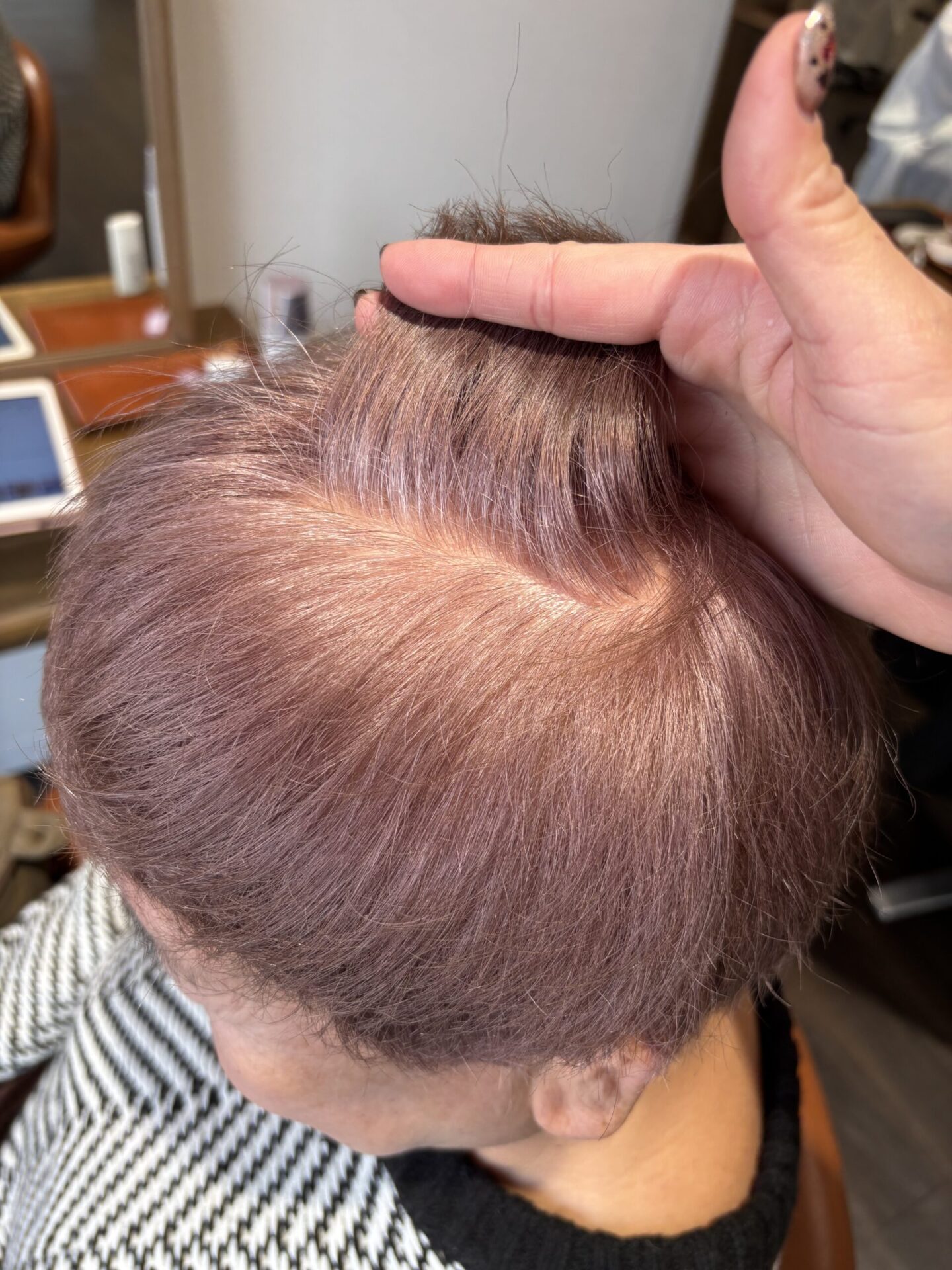 明るい白髪ぼかしカラーなので伸びた時は根本と毛先の差が出づらいです♪