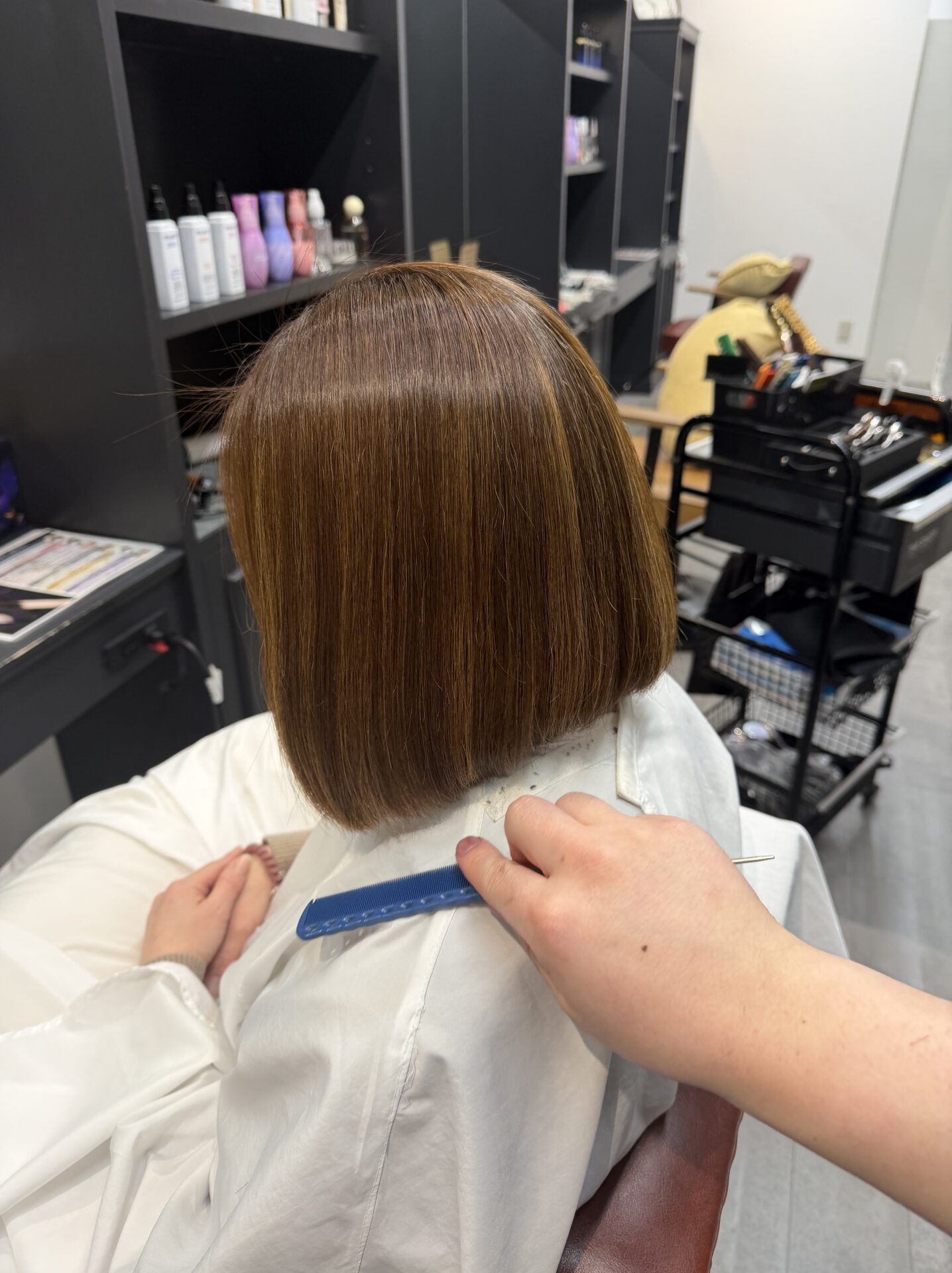 私の縮毛矯正は、髪の状態に合わせて薬剤と熱の入れ方を細かく調整しています。