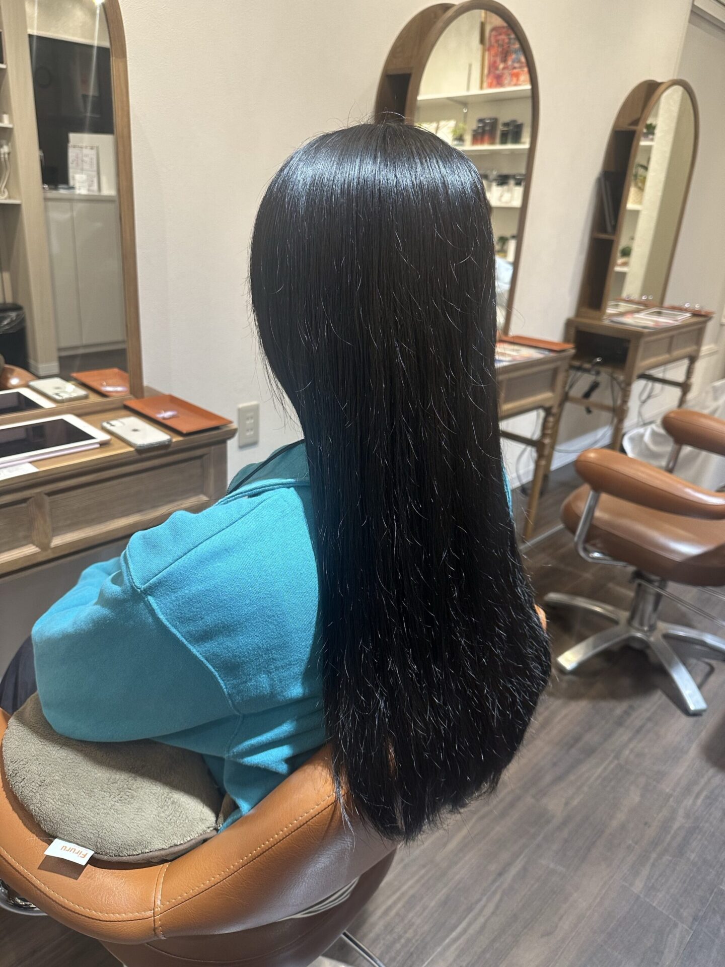 ここから明るくする予定ないとの事だったので、落ちない黒で染めていきます✨
