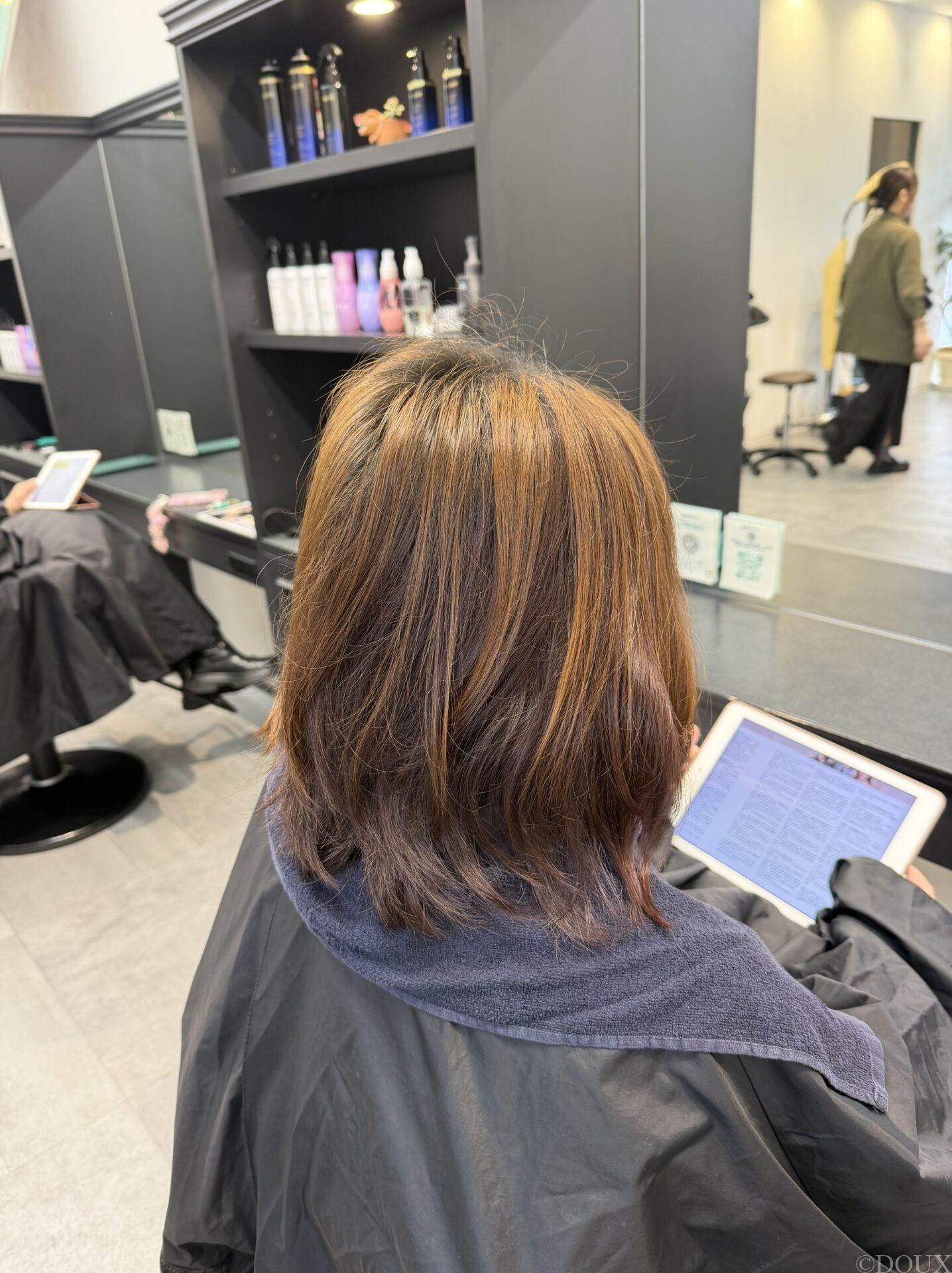 今回のポイントは“おしゃれ”だけじゃなくて、表面の白髪を自然にカバーしていること。
