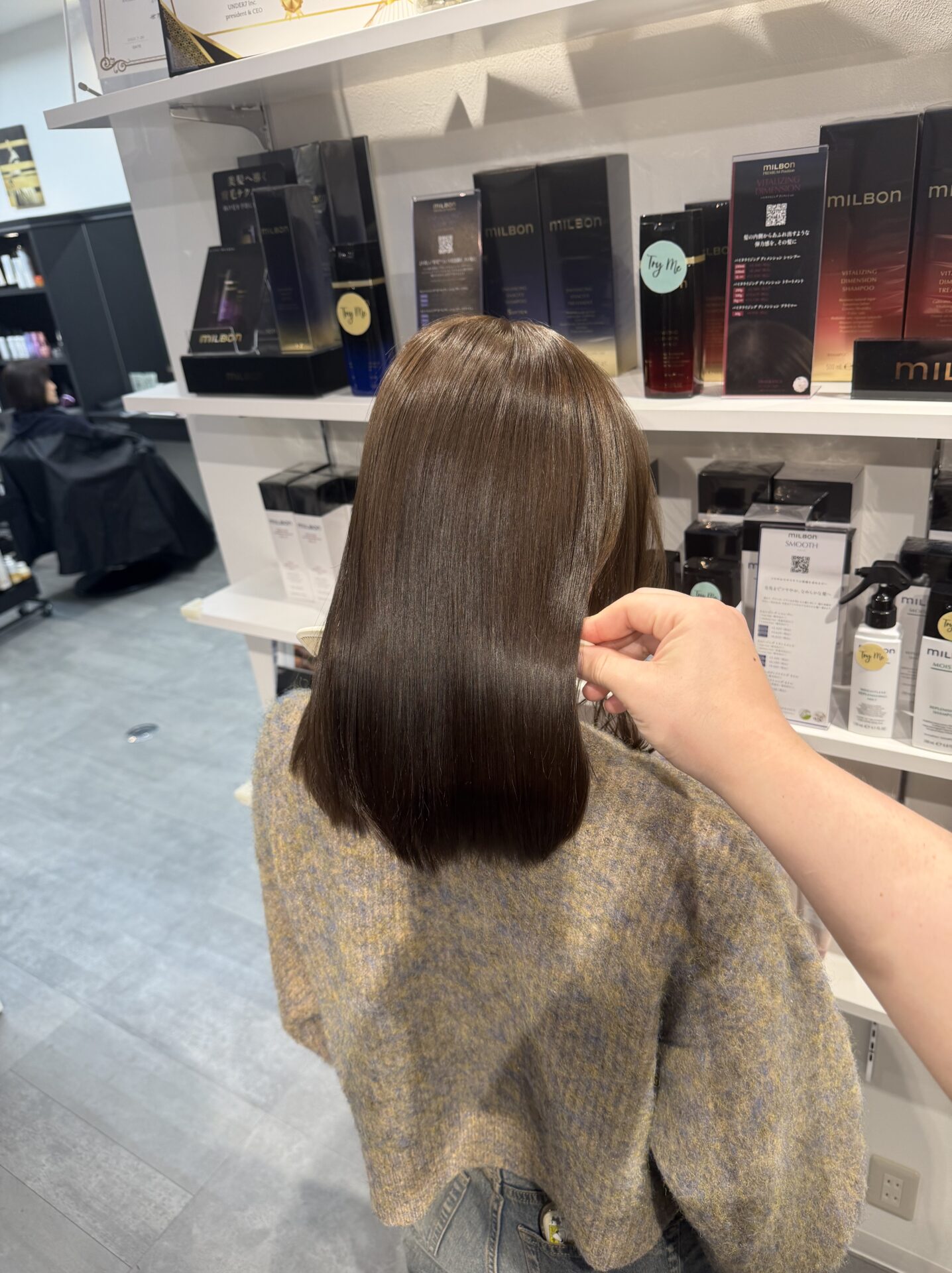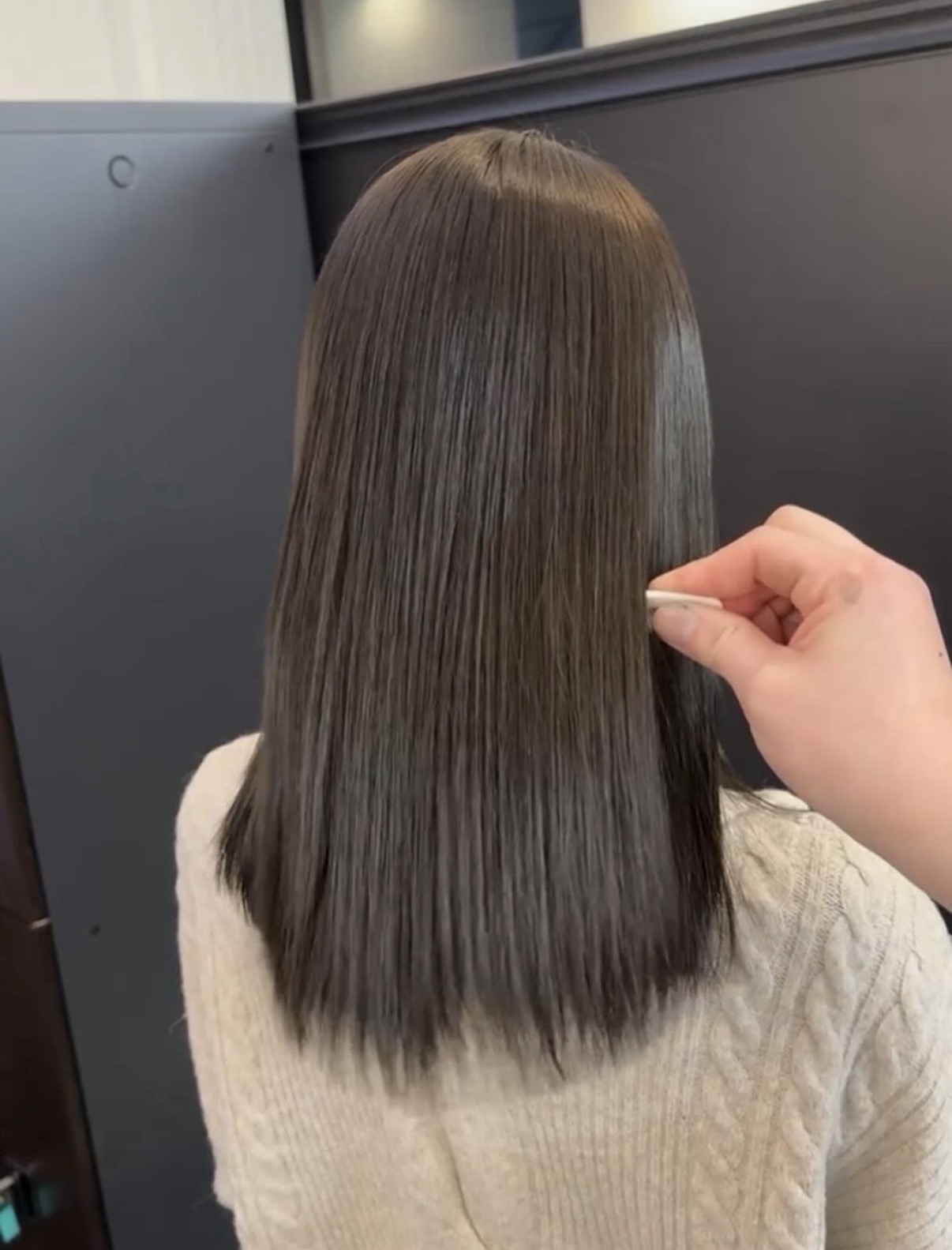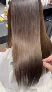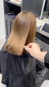 しっかり暗めでも重たく見えず、ツヤと柔らかさを両立した大人っぽい仕上がりになります♪