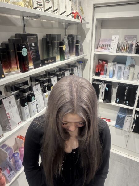 今回の完成スタイルです。ブリーチなしとは思えないほどの透明感と、オレンジベージュ...