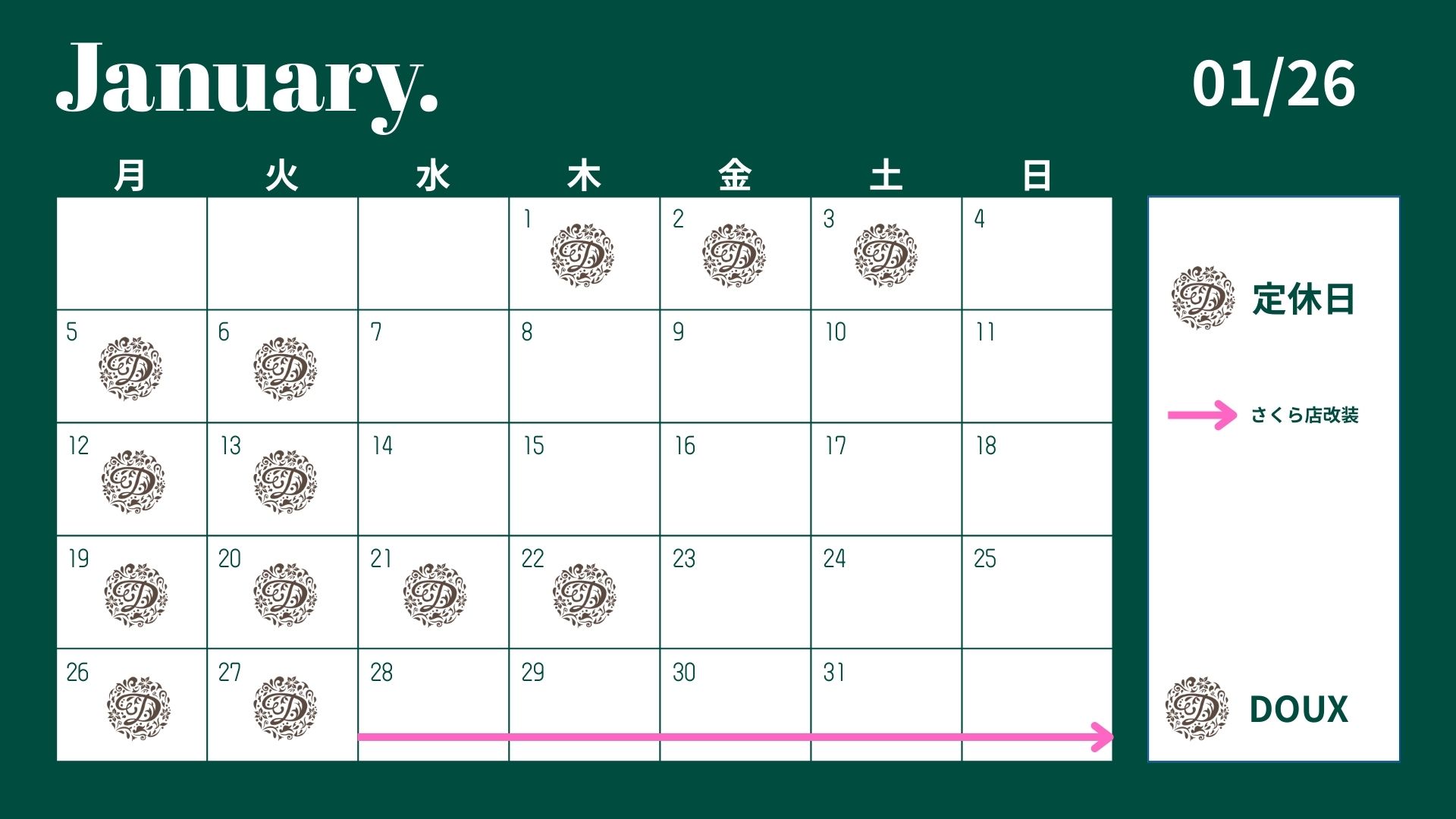 2026年 1月の営業日のお知らせ