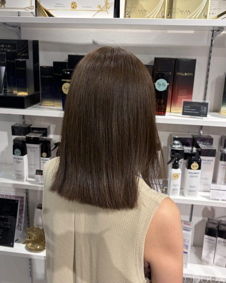今回仕上げたのは、深みのある艶ボルドーカラー。 毛先の明るさを活かして、自然なグラデーションになるようにカラーを調整しています! 光に当たるとほんのり赤みが感じられ、ツヤ感もぐっと引き立つカラーで...