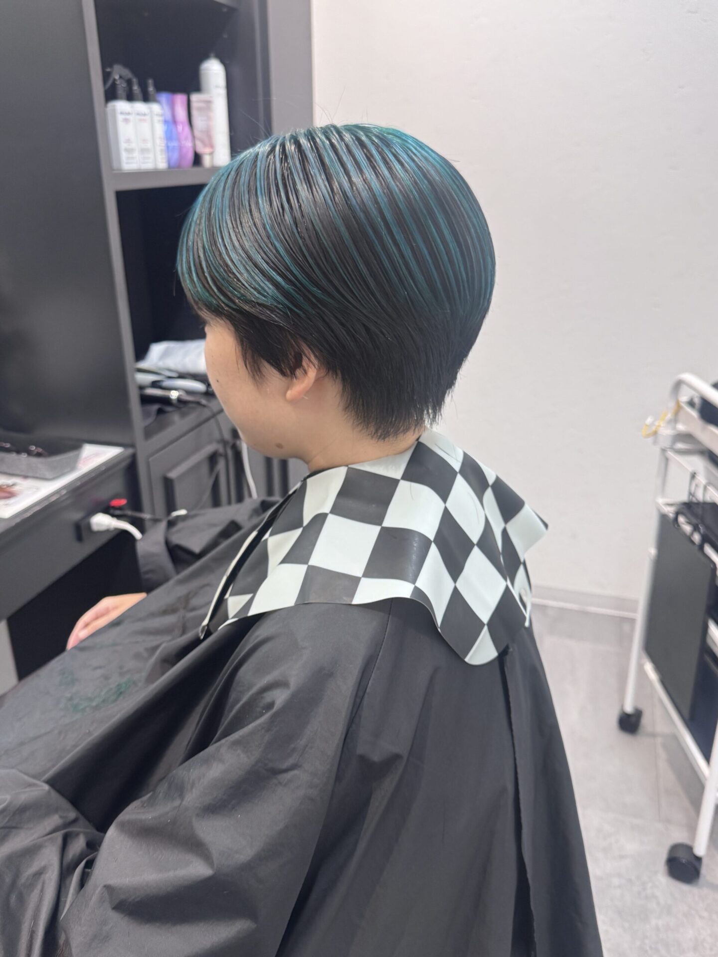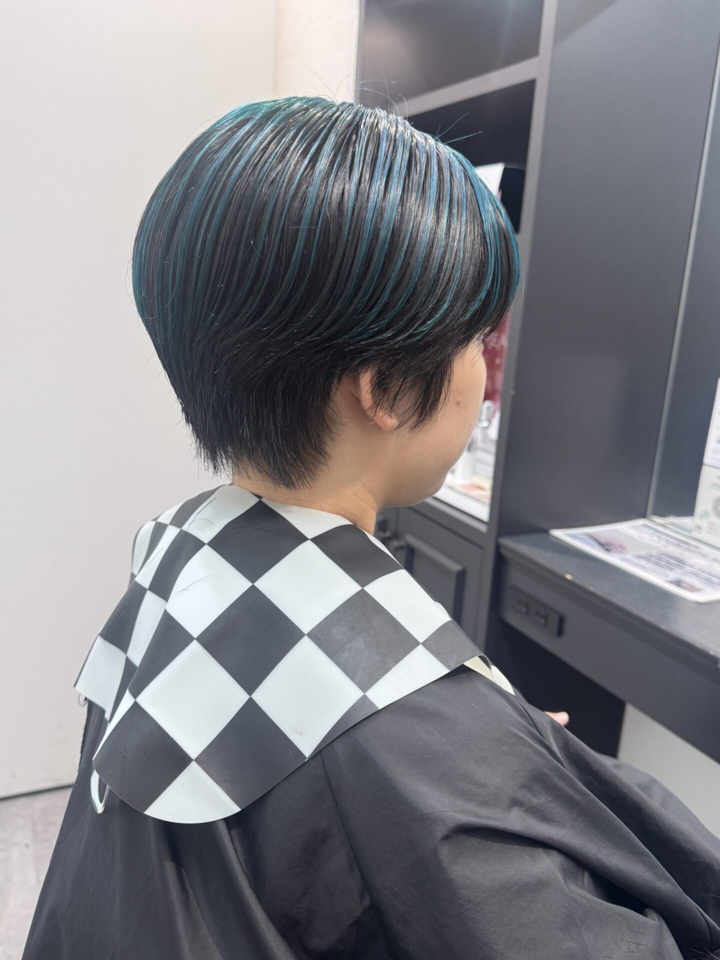 アンブレラカラー シアンブルー ハンサムショートボブ