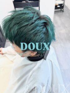 スタイルは、顎下切りっぱなしボブで、イヤリングカラーで透明感のあるミルクティーベージュに