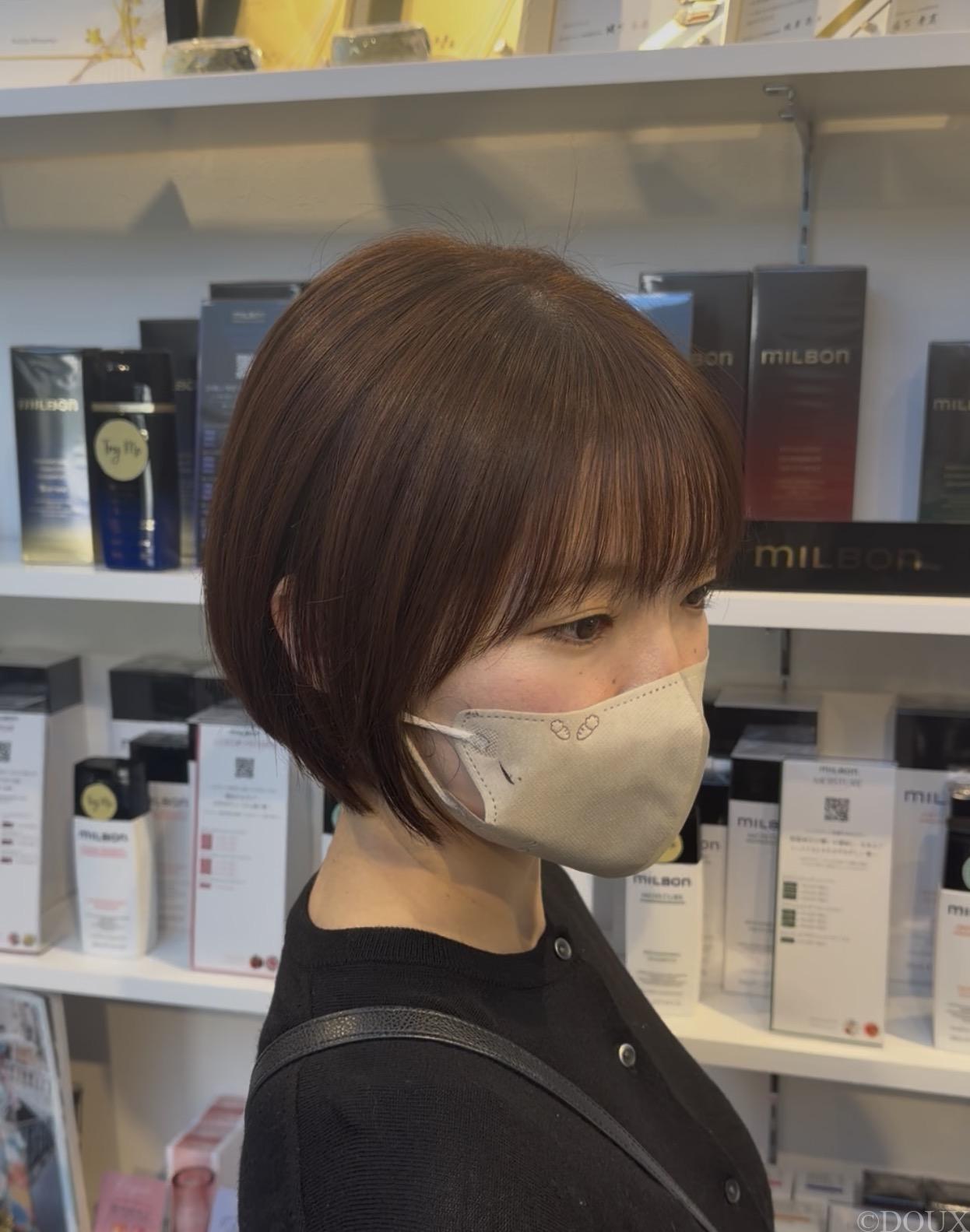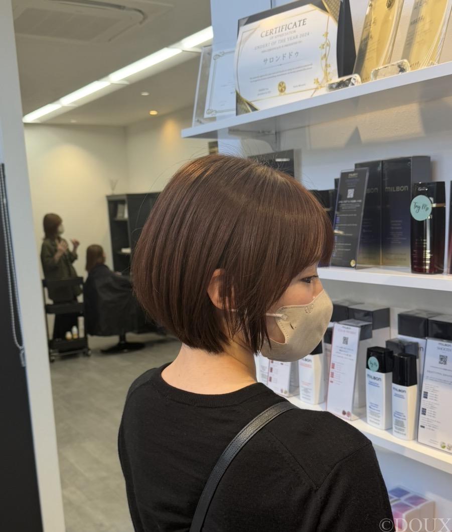 丸みとまとまりを重視したショートボブ。乾かすだけで形になりやすく、忙しい朝でも手間なく整う、大人世代に人気のスタイルです。