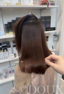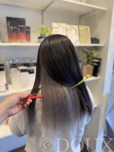 ブリーチ2回でつくる シルバー × 黒アンブレラカラー 派手かな?と不安な方でも、 アンブレラデザインで派手すぎず上品に仕上げています。 ブリーチ施術はどうしてもダメージが出やすいので、 ご自宅でのケア方法もしっかりお伝えします。 ✔ ダメージを最小限に抑えたい ✔ 色持ちを良くしたい ✔ できるだけ綺麗な状態をキープしたい そんな方も安心してお任せください。