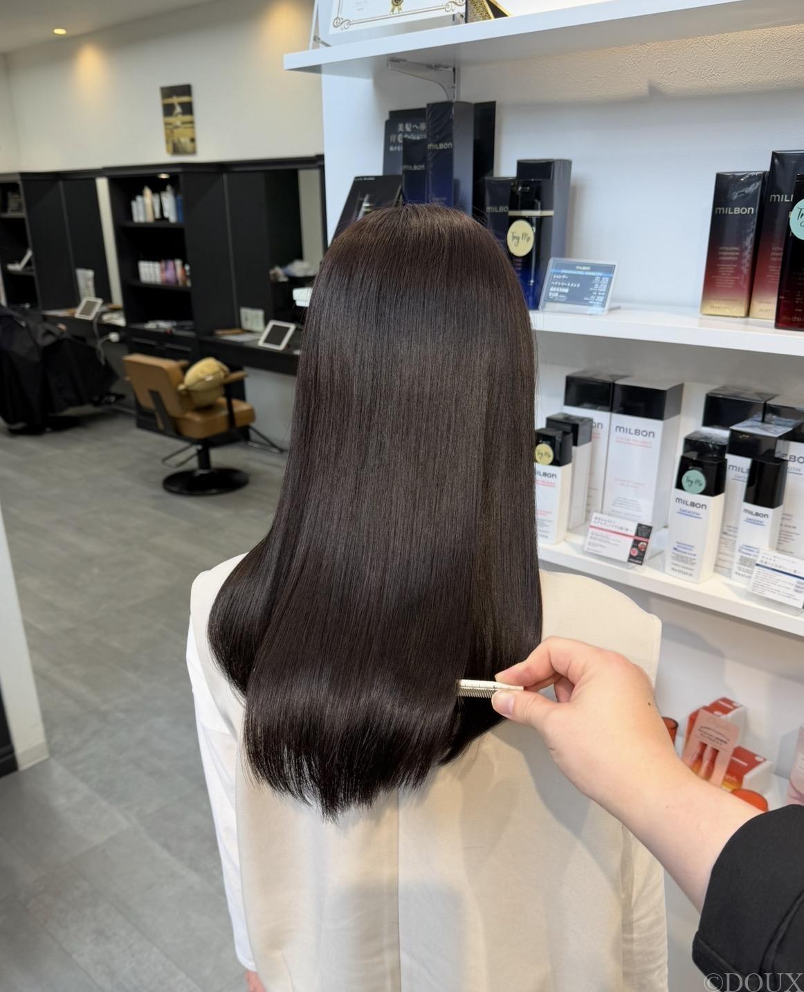 ダークグレージュは、 暗めなのに重く見えない大人カラー。 深さの中にグレーの透明感を含むことで、 ・落ち着き ・清潔感 ・上品さ を同時に叶えます。 黒ほど強くなく、 ブラウンほど赤みが出ないのが特徴です。