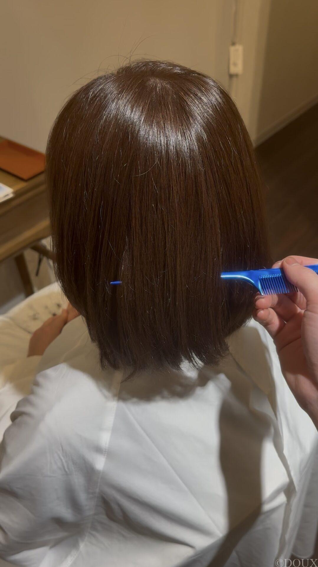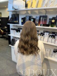 カラー剤で出せる一番明るいトーンで、ツヤ感のあるマイルドブラウンに仕上げました。赤みを抑えた柔らかいブラウンカラーです!