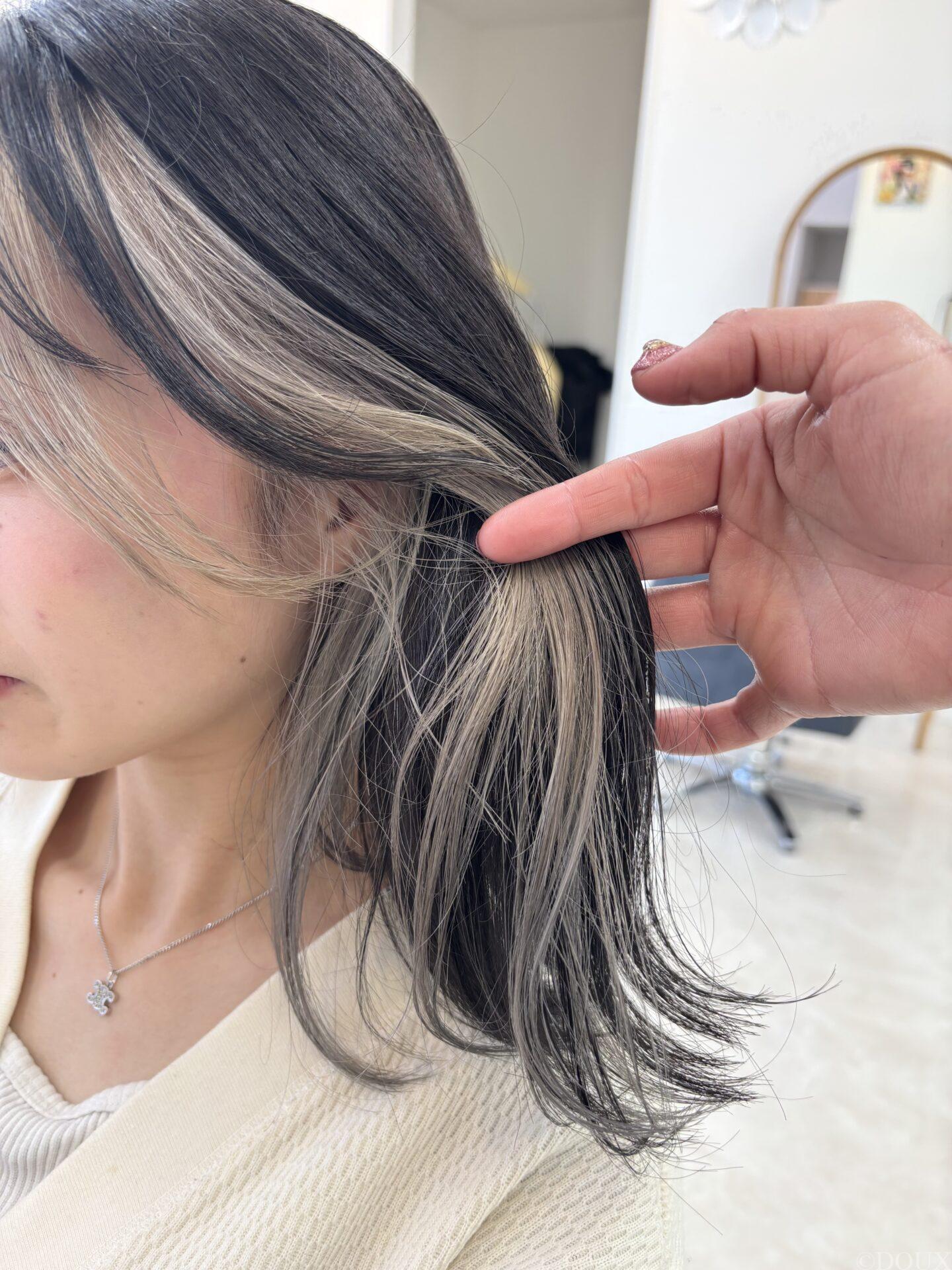 お顔周りブリーチ2回でホワイトベージュです♪ 暗いカラーを繰り返していたため、ブリーチを塗り分け、均等に抜けるようにしました。 お顔周りはアイロンをすることが多いため、ご自宅でのケアもしっかりしていくとパサつきを抑えられます!