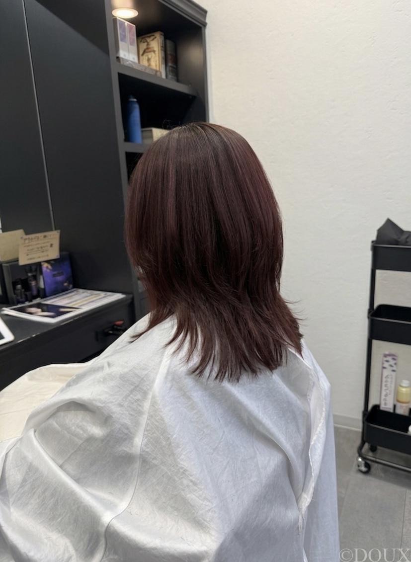 冬の乾燥でパサつきが残っていた毛先も潤いを与え、春の柔らかな光を味方に、華やかさを出してくれるボルドーカラーです✨️