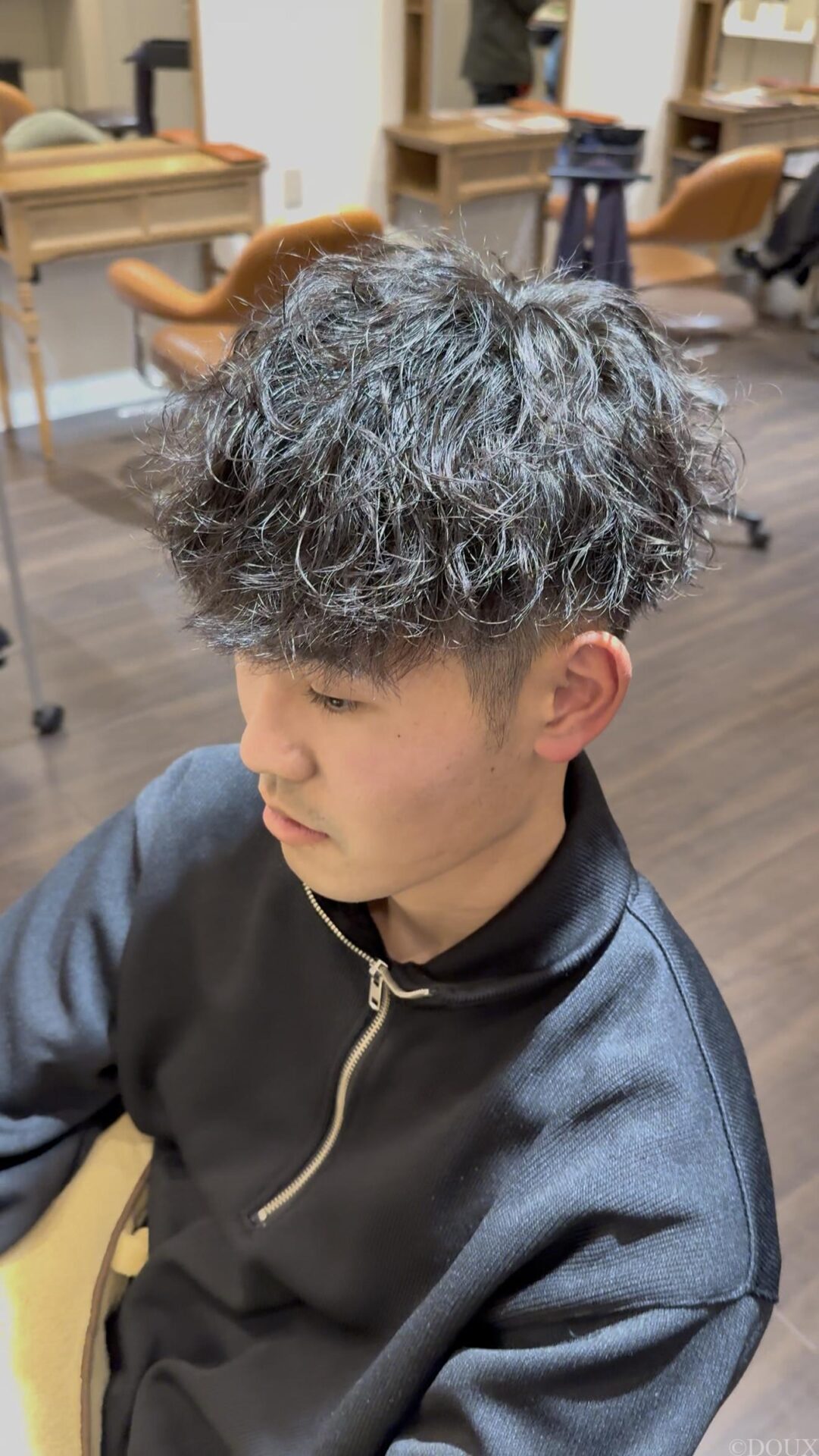 仕上がり 刈り上げマッシュにツイストスパイラルや波巻きパーマを組み合わせることで、