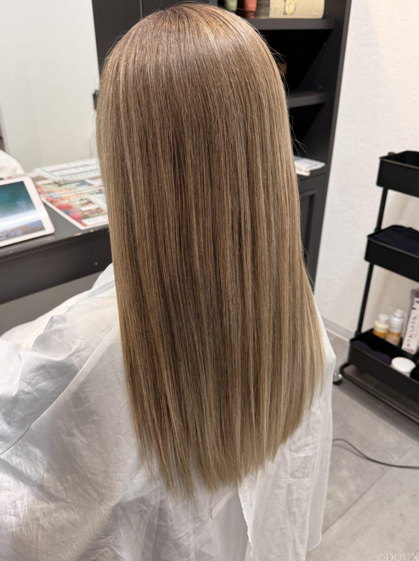 DOUXの明るい白髪染めは、白髪を馴染ませつつ明るさをキープすることができます。 現状の白髪率に合わせ、白髪染めの割合や明るさをコントロールすることで、暗く染まってしまうことを防げます。 白髪染めでお悩みの方はぜひドゥへ。