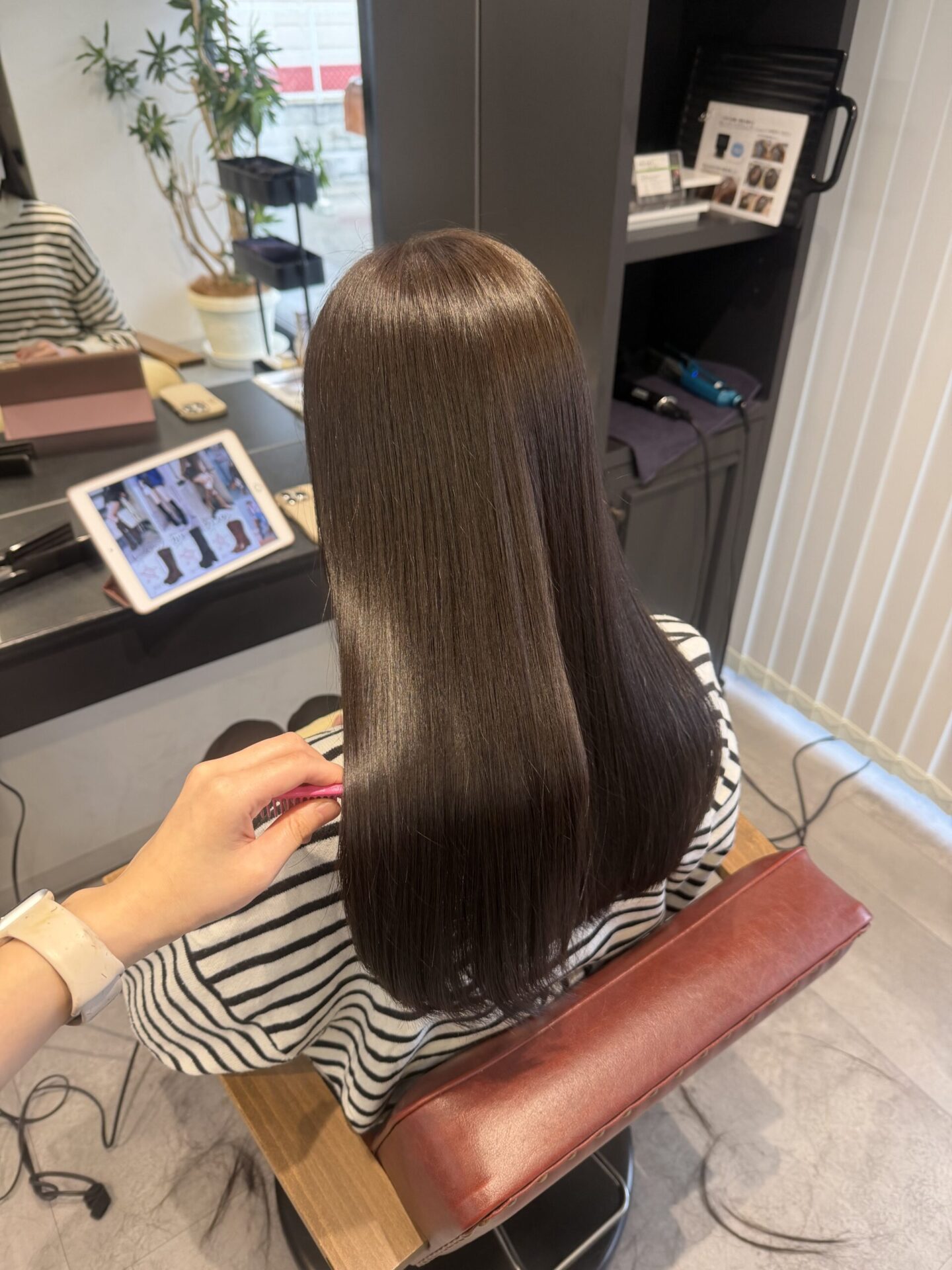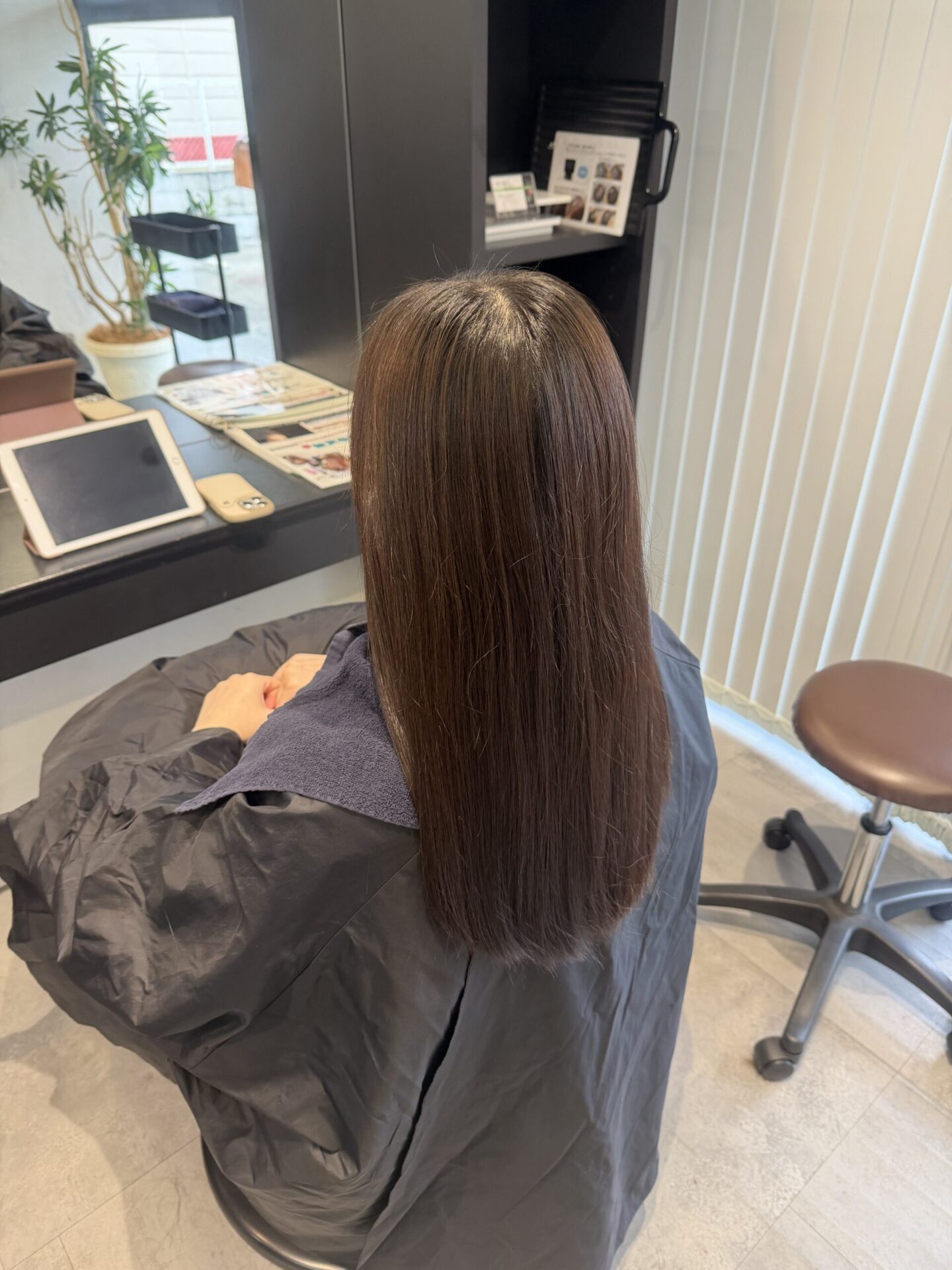 赤みを抑えて、透明感のあるツヤ髪に仕上げました🌿