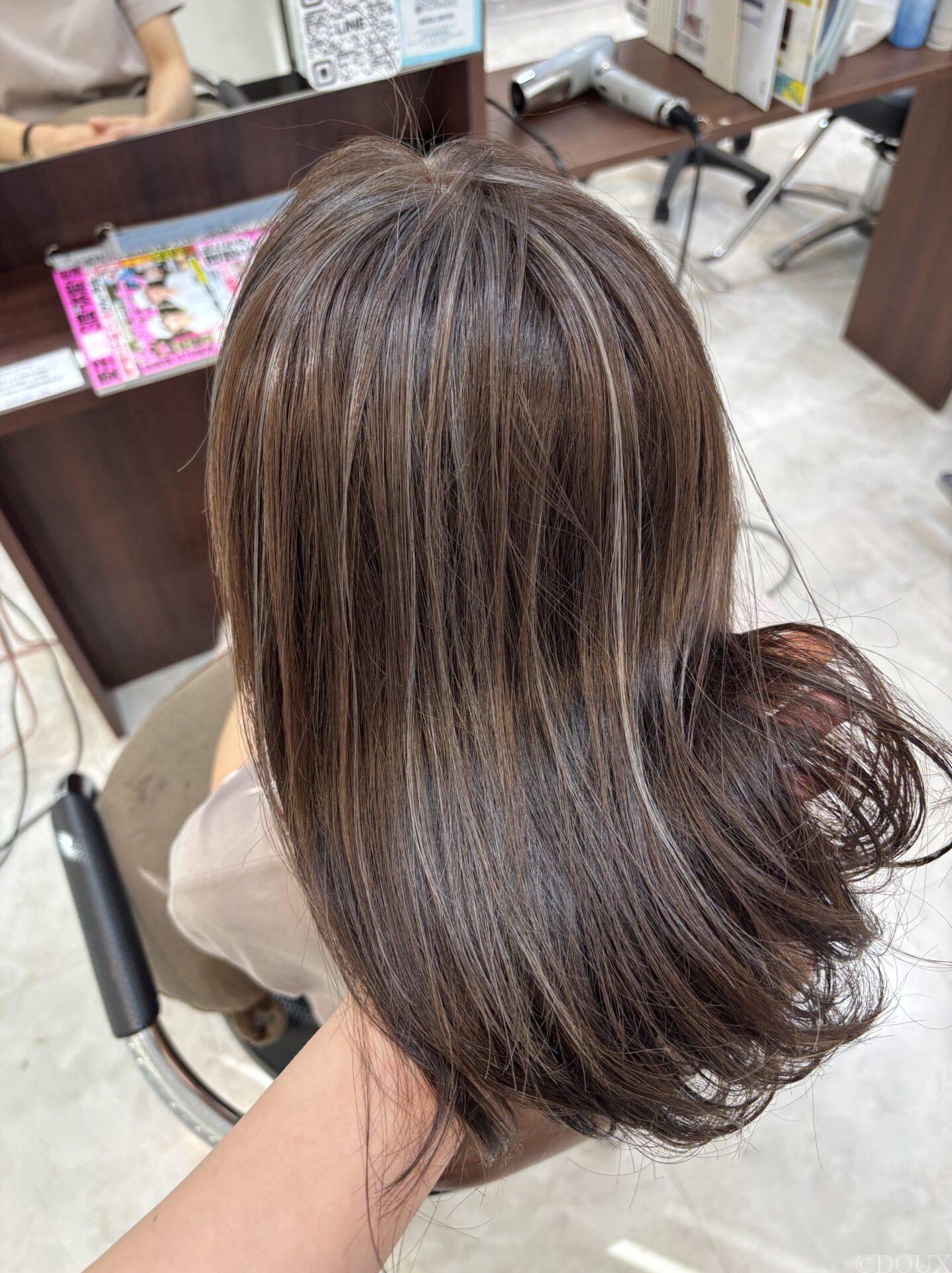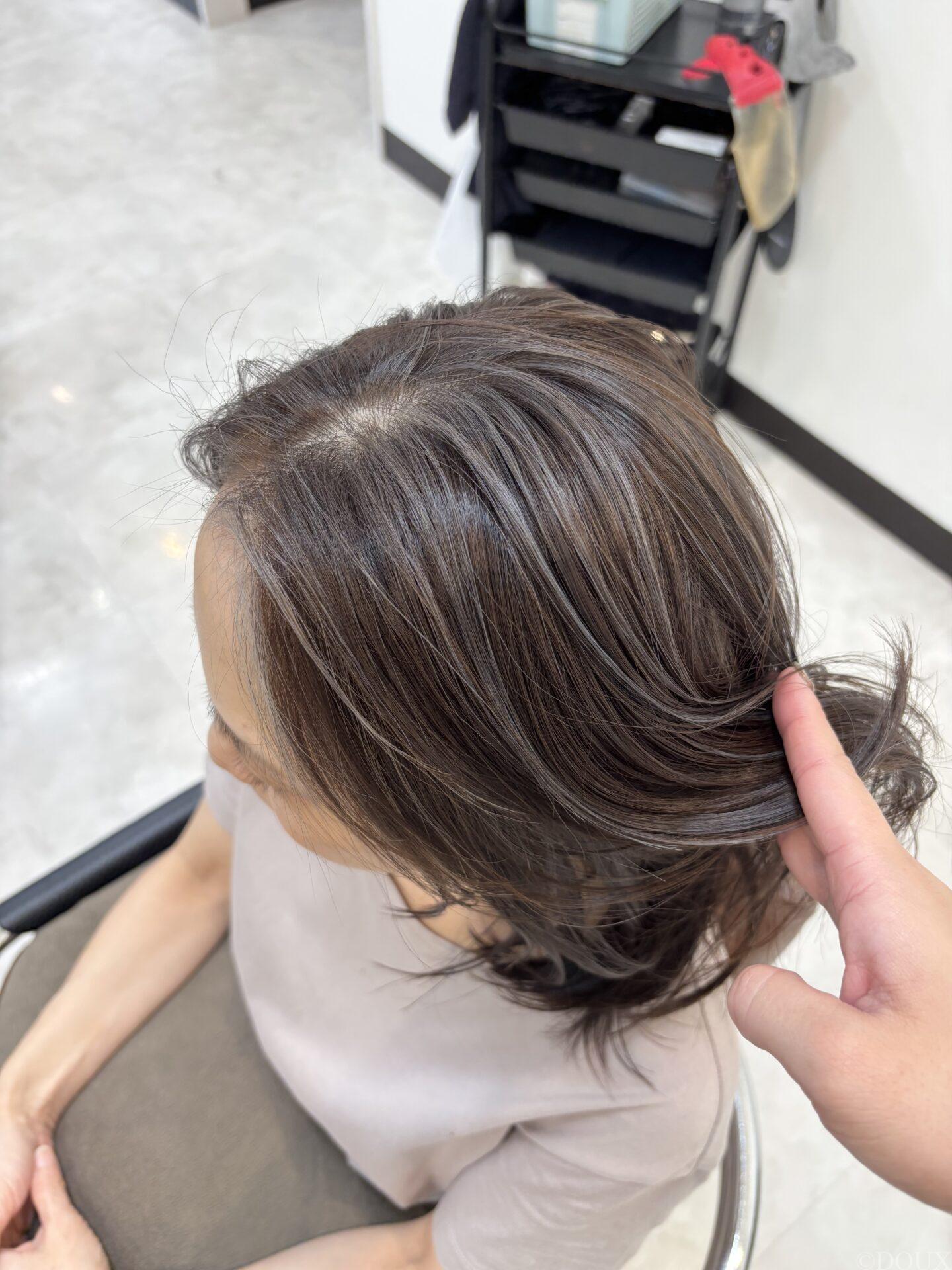 細く太く入れ分けたハイライトで白髪が伸びても気になりにくく、おしゃれにお悩み解決できるデザインをぜひ試しください♪